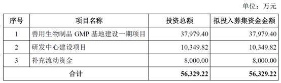 生泰尔原拟在深交所创业板公开发行新股数量不超过1916.00万股,占发行后公司总股本的比例不低于25%。公司原拟募集资金56,329.22万元,分别用于兽用生物制品GMP基地建设一期项目、研发中心建设项目、补充流动资金。