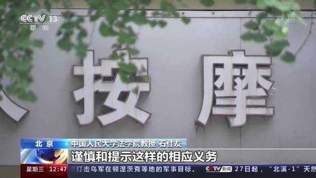 中国人民大学法学院教授 石佳友:那么这里面就要求经营者他对消费者提供产品和服务的时候一定要尽到必要的注意、谨慎和提示这样的相应义务,要确保消费者的人身财产安全。