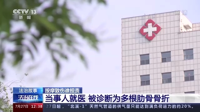 卜女士的女儿:我们就听见咔嚓一声,然后我妈就说哎呀,疼,我就说怎么了,然后按摩的那个小姑娘就说没事,姐,就是我的手响了一下,然后我们就赶紧问我妈感觉怎么样,老太太就说疼。