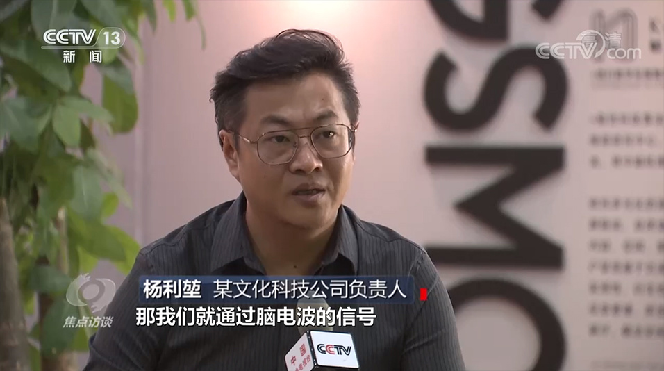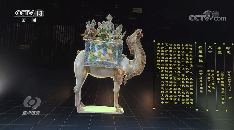 这个游客正在欣赏国家一级文物唐三彩骆驼载乐俑,虽然他在屏幕前一步未动,一声没出,但屏幕上文物的图案却一直在变化,这些变化其实是由参观者的意念来控制的,这听起来有些不可思议,但脑波文物交互系统让这变成了现实。