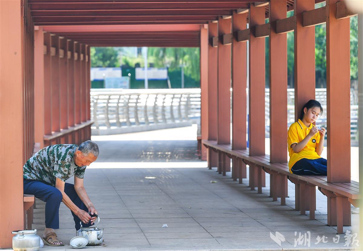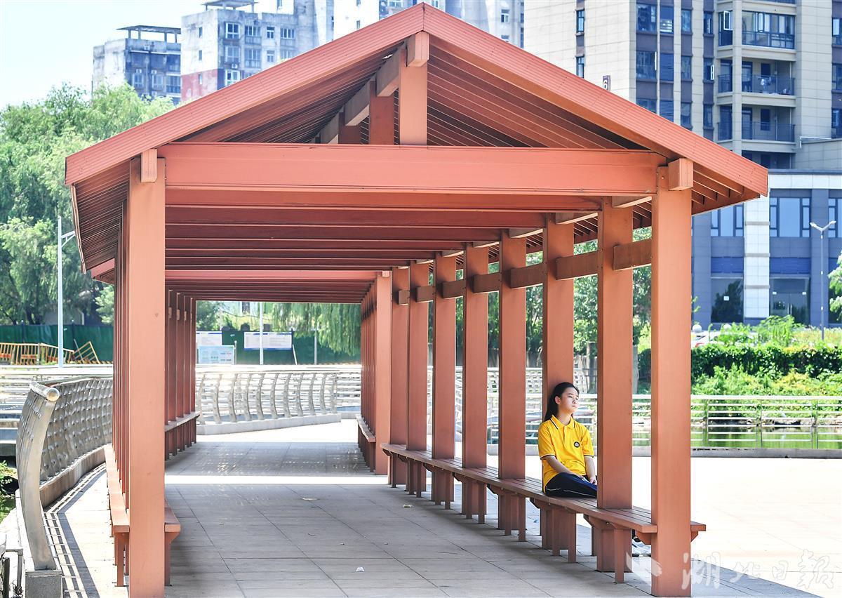 该广场紧邻秀丽柴泊湖,总占地总面积120亩,主要以园林绿化为主,为市民提供一个美丽的休闲娱乐场地,目前广场已成为阳逻的一张城市名片。(湖北日报全媒记者 朱熙勇 摄)