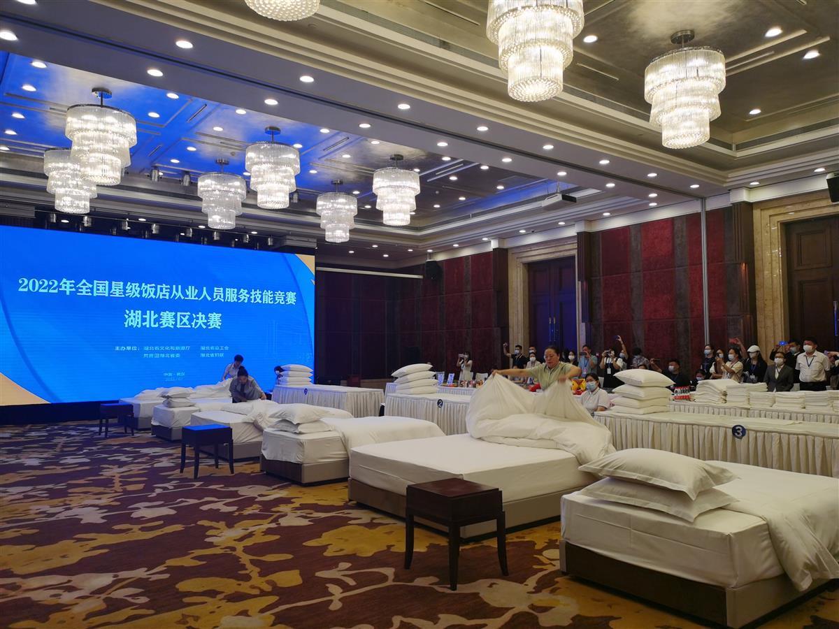 住星级酒店享受到的服务,总是格外熨帖入心。这份润物细无声的背后,其实是日复一日的苦练。日前,由湖北省文化和旅游厅、湖北省总工会、共青团湖北省委、湖北省妇联共同主办的2022年全国星级饭店从业人员服务技能湖北赛区决赛在武汉举行,全省15支代表队现场角逐,将酒店服务的“工匠精神”,展现得淋漓尽致。