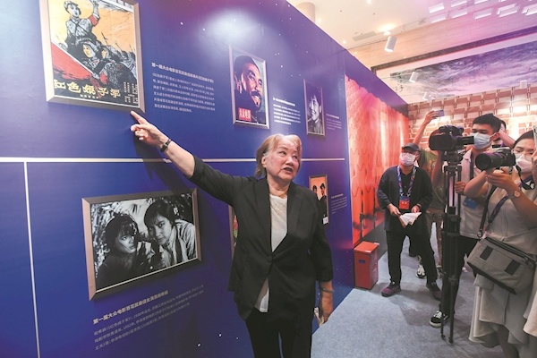 7月29日,大众电影百花奖60周年主题展在武汉园博园长江文明馆启动,图为祝希娟现场回忆自己凭借电影《红色娘子军》获得第一届最佳女演员奖的经历。 楚天都市报极目新闻记者萧颢摄