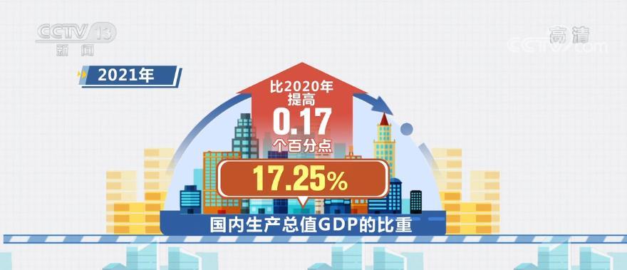经核算,2021年 “三新”经济增加值为197270亿元,比2020年增长了16.6%,相当于国内生产总值GDP的比重为17.25%,比2020年提高0.17个百分点。