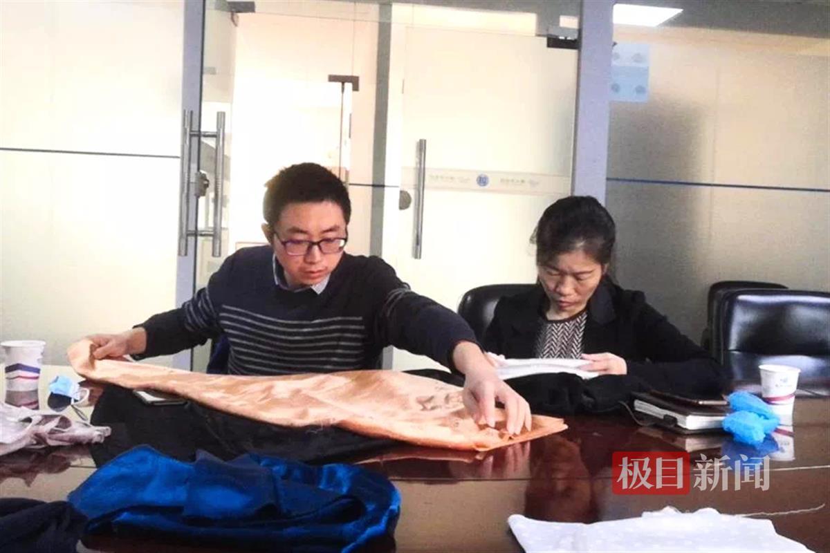 曹根阳(左)研究天丝绸面料刮丝疵点的规律