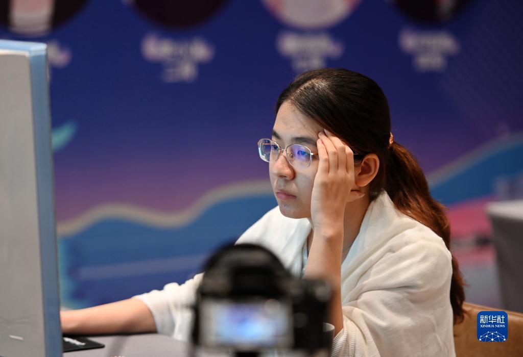 8月1日,中国棋手陆敏全六段在对阵韩国棋手吴侑珍九段的比赛中。