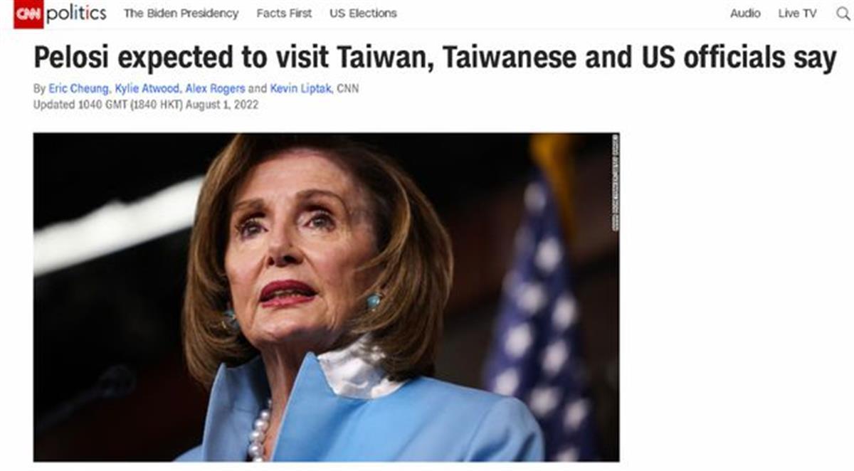 美国有线电视新闻网(CNN)8月1日傍晚发布报道,称一名台湾民进党当局的“高官”以及一名美国政府的官员均表示,尽管台湾并不在佩洛西此次亚洲之行的公开行程上,但美国政坛3号人物、美国国会众议院议长佩洛西,仍会在此次亚洲之行中窜访台湾。(据8月1日极目新闻)