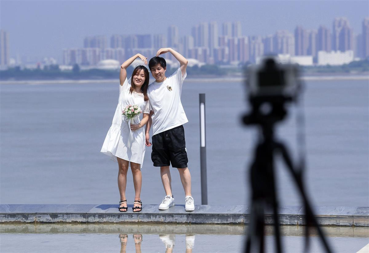张先生告诉记者,两人都是罗田人,也是高中校友,相恋两年多决定走入婚姻的殿堂,身边不少朋友都是在青山江滩婚姻登记处领证,他们也选择来到青山办理结婚证。尽管两人现在异地,但张先生表示:“我们以后都会留在武汉发展,这次我也是特意请假回来在武汉领证,朝着武汉方向就是回家的方向。”