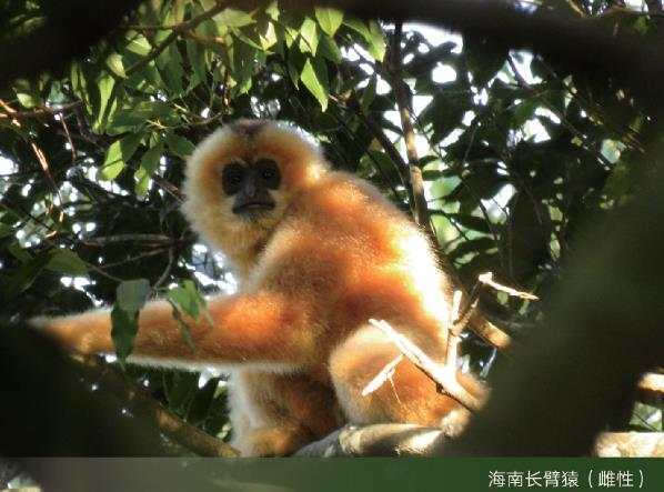 海南长臂猿是中国最珍稀的动物之一,目前有36只海南长臂猿生活在海南热带雨林国家公园。修长的双臂、小巧的身材,使海南长臂猿在雨林的高处也得以游刃有余,它们终生极少下树活动。为了保护仅存的海南长臂猿,人们为它们种植喜食的乡土植物,并在高达十几米的树冠间铺设生态绳桥,悉心呵护着这些神奇的树栖精灵。