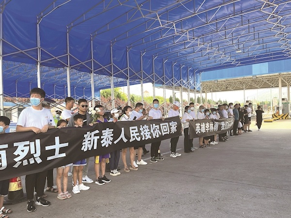 4日下午,护送李林雨烈士骨灰的灵车,从泰新高速新泰南出口驶出。英雄终于回家了。
