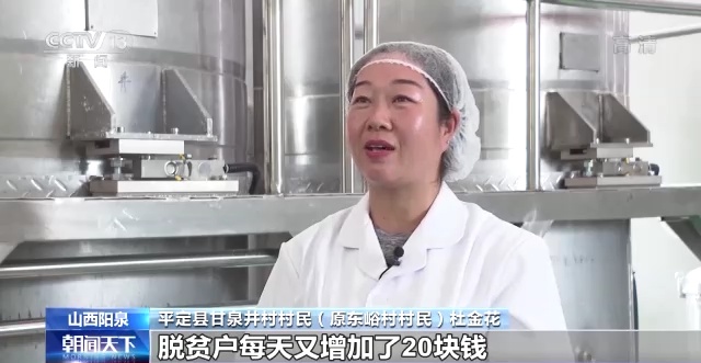 平定县甘泉井村村民(原东峪村村民) 杜金花:合并村以后,待遇都一样。而且咱们村还有自己的产业,优先让咱附近这几个村的村民干活,脱贫户每天又增加了20块钱,我感觉是挺好的。