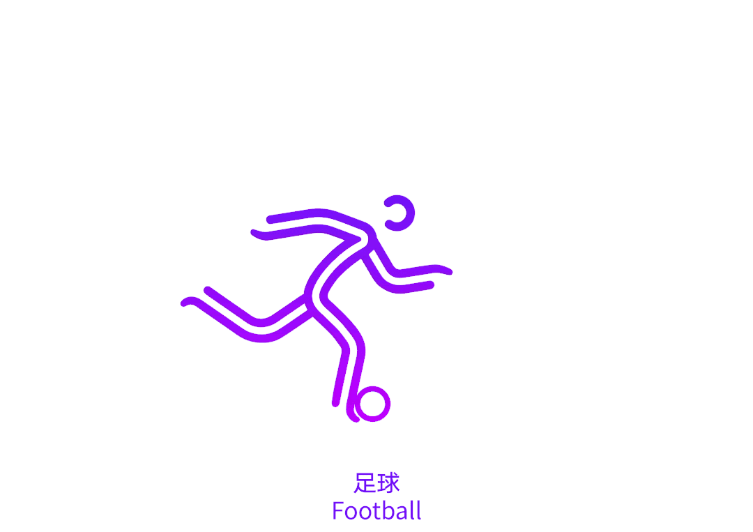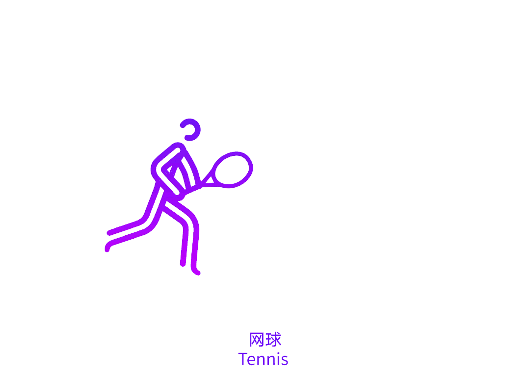 在延续杭州亚运会主形象色“虹韵紫”,遵循体育图标功能性原则的基础上,采用动作捕捉与游戏引擎作为设计的核心技术,通过动态运动过程、背景刷入、定帧展示三步曲,对体育运动的“态”与“势”进行演绎,形成流畅的动画效果。
