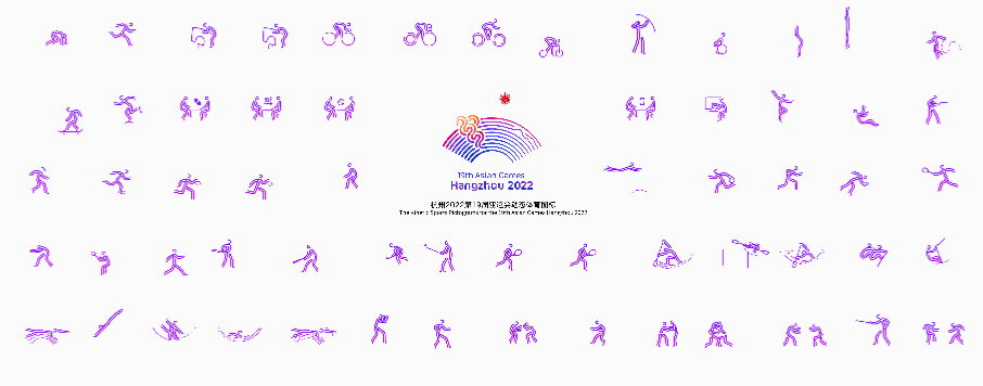 央视网消息:8月8日,2022年第19届亚运会组委会发布杭州亚运会动态体育图标。