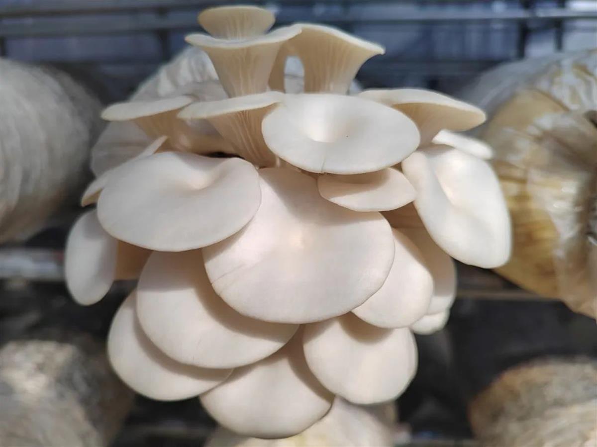 据独山墩香菇基地负责人毛龙涛说,别看平菇现在的颜色是白的,如果把温度控制在22摄氏度以下,长出来就是灰白色的,品质、品相在市场上非常受青睐,往往一大筐拉过去,10分钟就被抢购一空。
