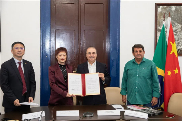 人民网里约热内卢8月7日电(记者陈一鸣)8月5日,巴西里约热内卢州安格拉多斯雷斯市与广东省台山市合作备忘录签约仪式以线上线下相结合方式举行,中国驻里约总领事田敏应邀在安格拉多斯雷斯市出席仪式。