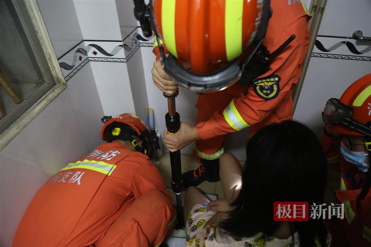 据悉,因卫生间地面有水,女孩洗漱完毕后不慎将左脚滑入蹲便器下水道孔内。幸亏消防救援及时,女孩左脚只是轻微破皮,并无大碍。
