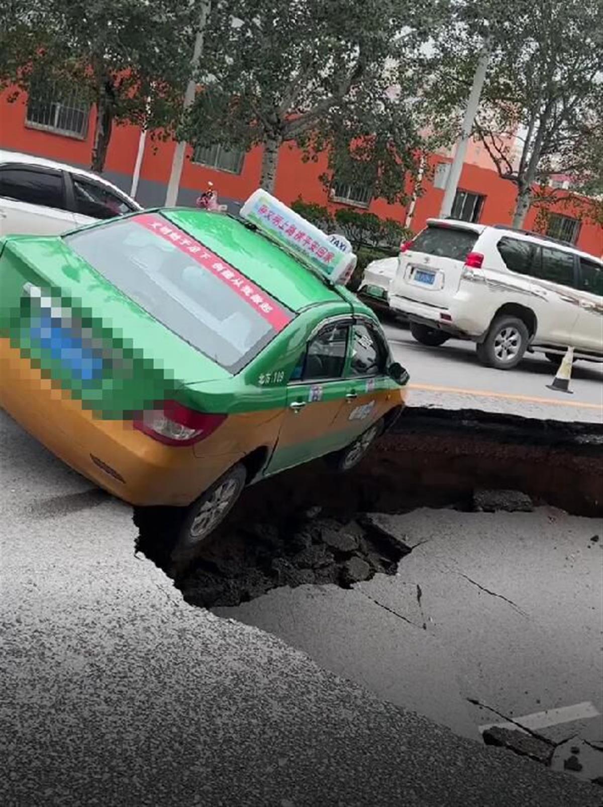 8月9日下午,陕西榆林市榆阳区长虹路与红山路十字路口附近,一处路面突然塌陷,致使一辆行驶中的出租车悬在塌陷产生的大坑边。现场目击者向记者介绍,事发时间为下午2点钟左右,目前塌陷区域已被围挡拦住。榆林市交警工作人员表示,事发后他们第一时间到场处置。