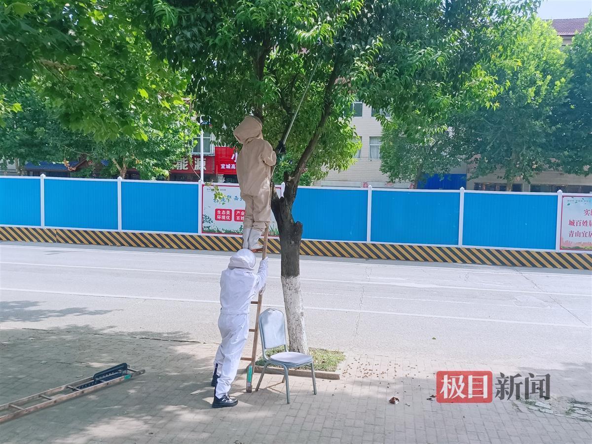夏季马蜂活动频繁,严重影响群众的日常生活。近日,南漳县水镜大道消防救援站接到多起马蜂筑巢威胁人生安全的警情,仅8月10日一天,消防救援人员就顶着40℃高温,在多处地点为居民摘除马蜂窝十余个。
