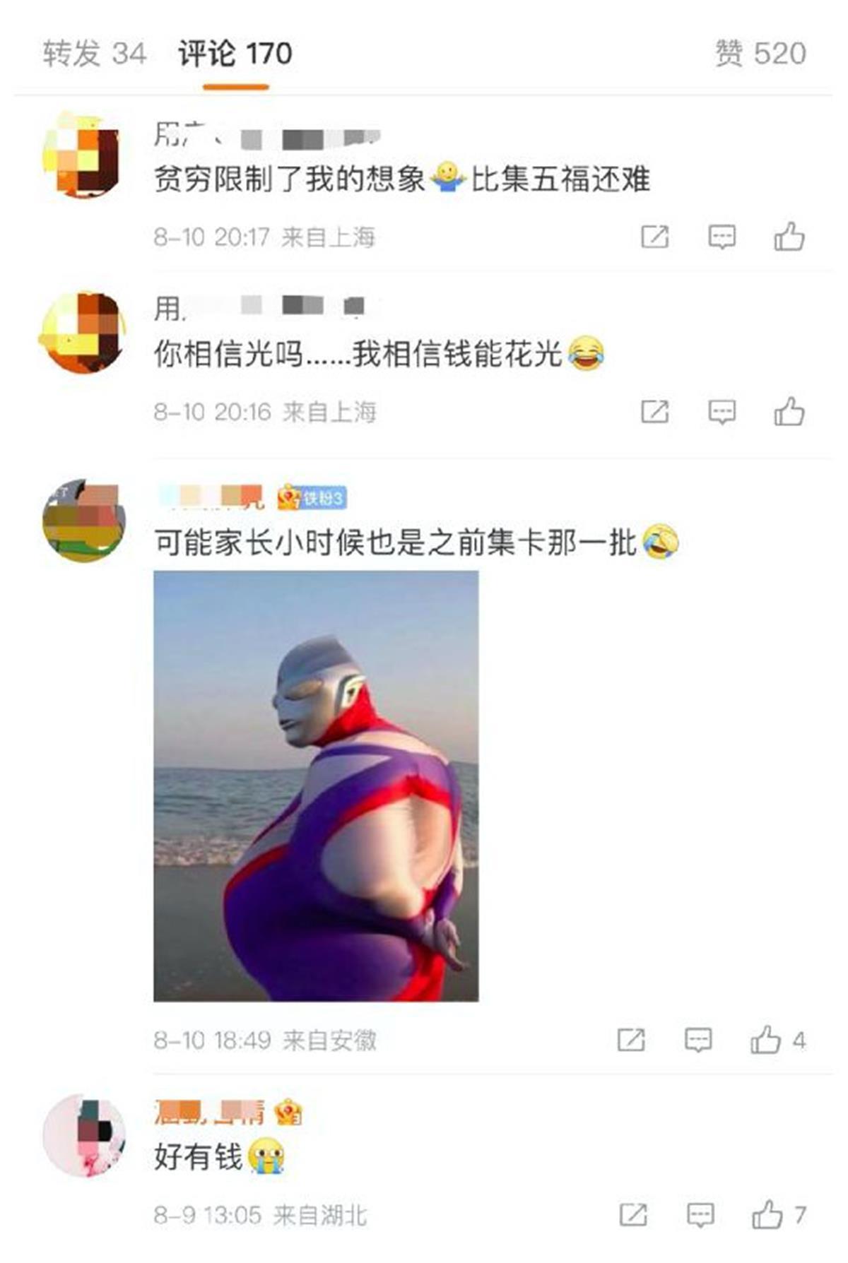 花200万元买一堆纸片,还能淡定表示“没集齐”,这家的经济实力的确是雄厚,普通家庭哪怕有这个心,也没这个钱啊!难怪有网友调侃说:“你相信光吗?我相信钱能花光。”