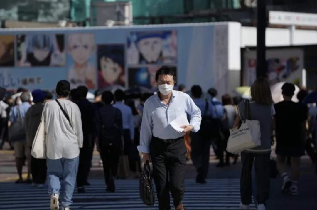 7月29日,戴口罩的行人走在日本东京涩谷街头。新华社记者 张笑宇 摄