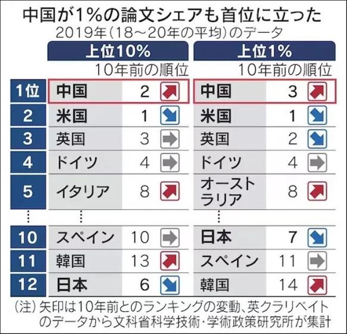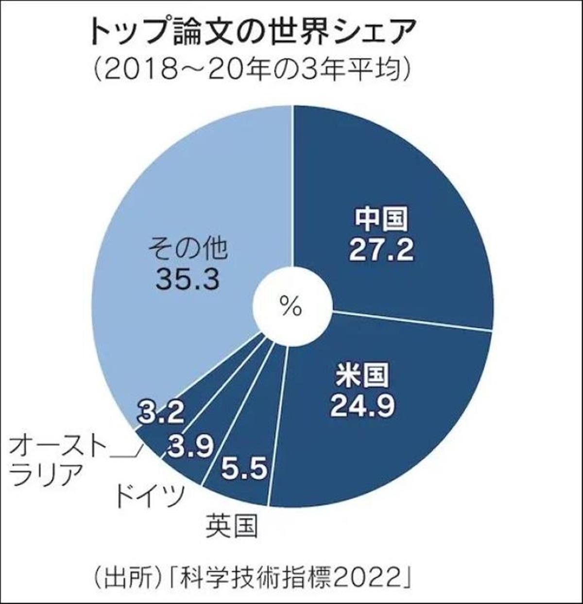 《卫报》指出,日本研究所发表的研究报告与今年早些时候发表的另一份研究报告的结果相当吻合,认为中国人发表的论文数量在世界上最多被引述的1%论文中的占比早在2019年就超过了美国。