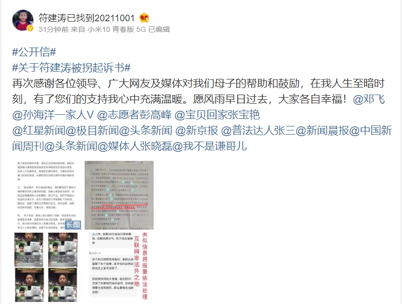 8月9日,彭冬英发文表示,自己和儿子符建涛因找回孙卓的线索问题,遭到网暴。她就“线索和悬赏金”相关问题向孙海洋接连发问:符建涛提供的线索对于找回孙卓到底有没有帮助?是否公开承诺过给提供线索的人支付赏金?符建涛提供的线索是否符合孙海洋设置的条件?随后,孙海洋回应极目新闻记者称,自己愿意支付20万元悬赏金,希望与符建涛妈妈取得联系。
