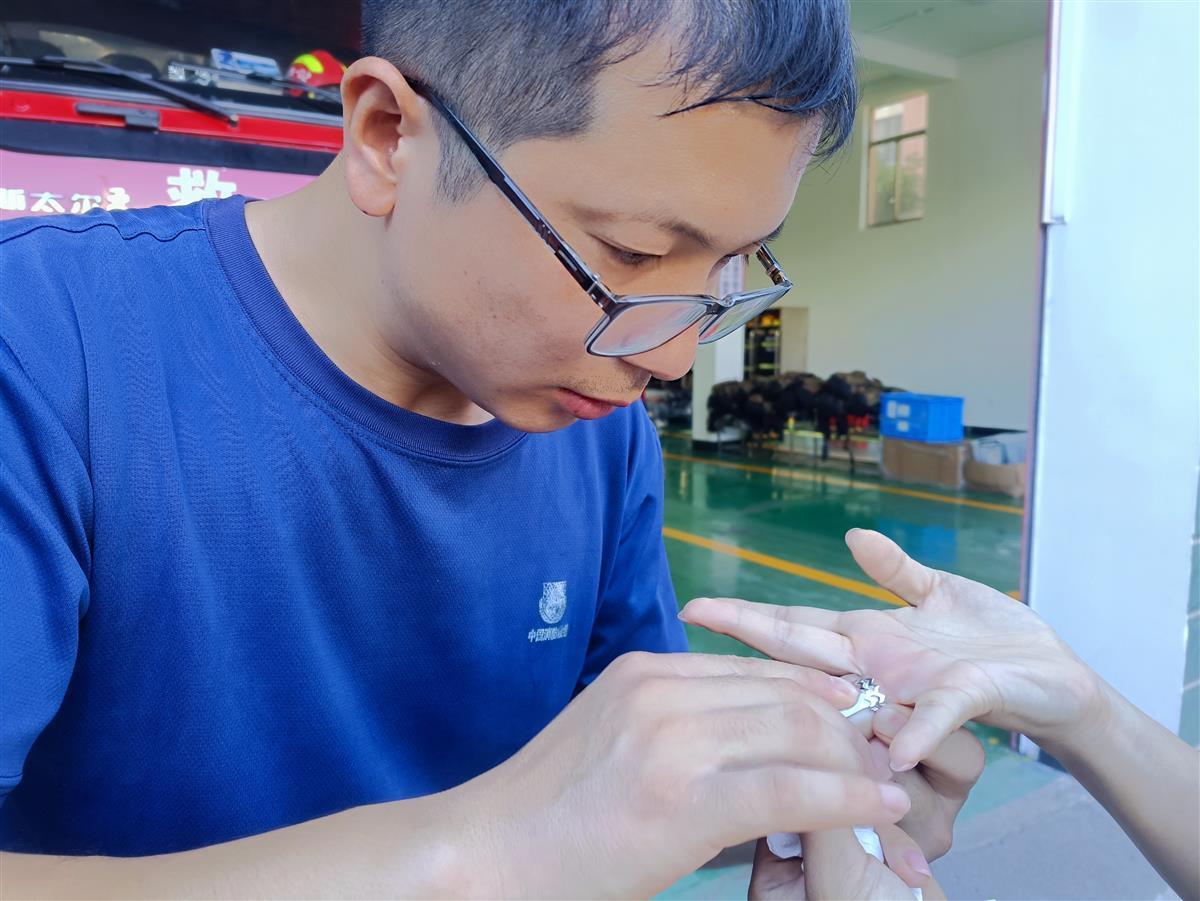8月12日早上7时许,一位年轻女子来到湖北襄阳市襄城区消防救援大队琵琶山路消防救援站求助。女子无奈地表示,自己12个小时前刚买的戒指戴在手上卡住了,尝试了好多方法都摘不下来,只能来消防队上门求助。