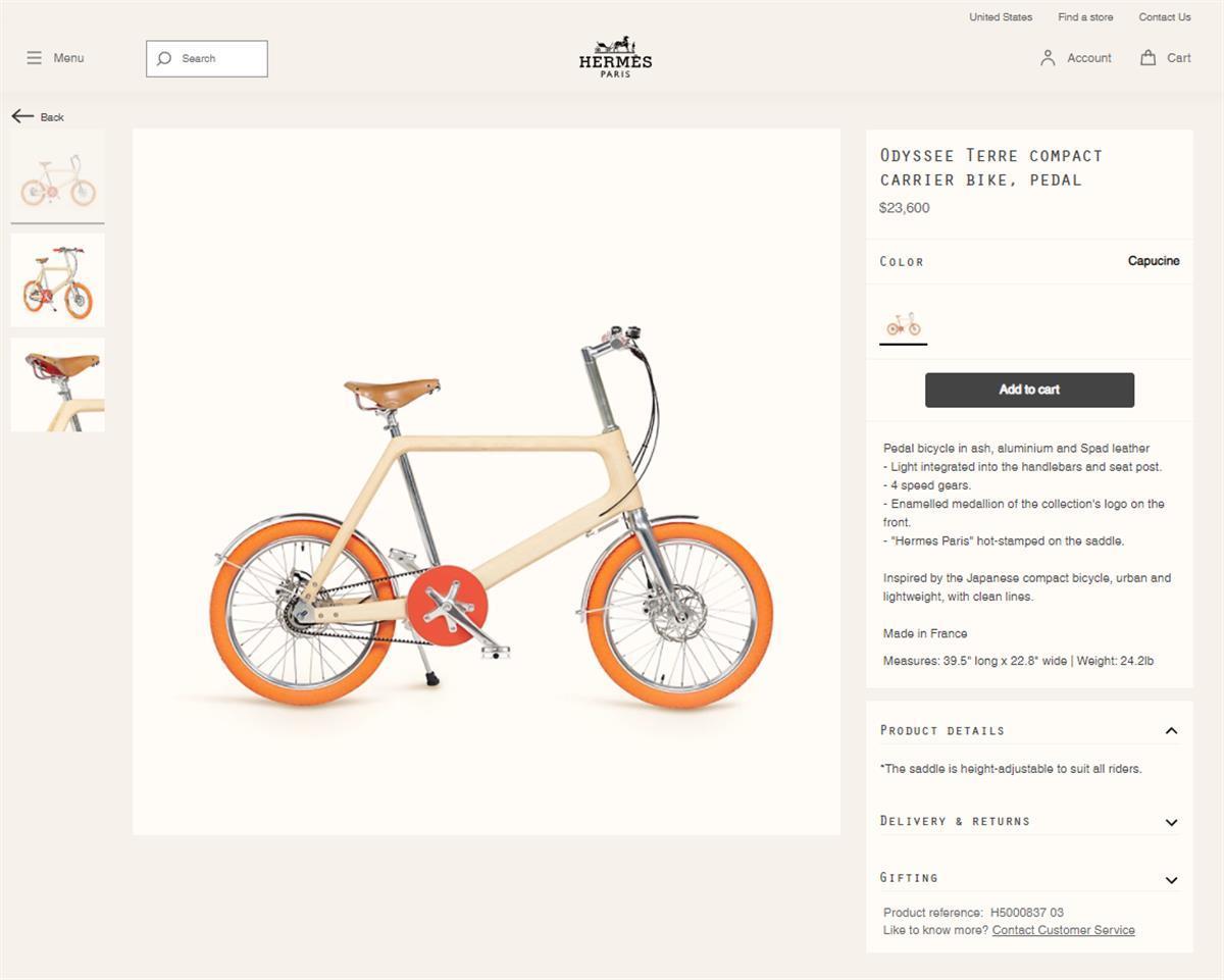 这款自行车售价23600美元(图源:爱马仕美国官网)