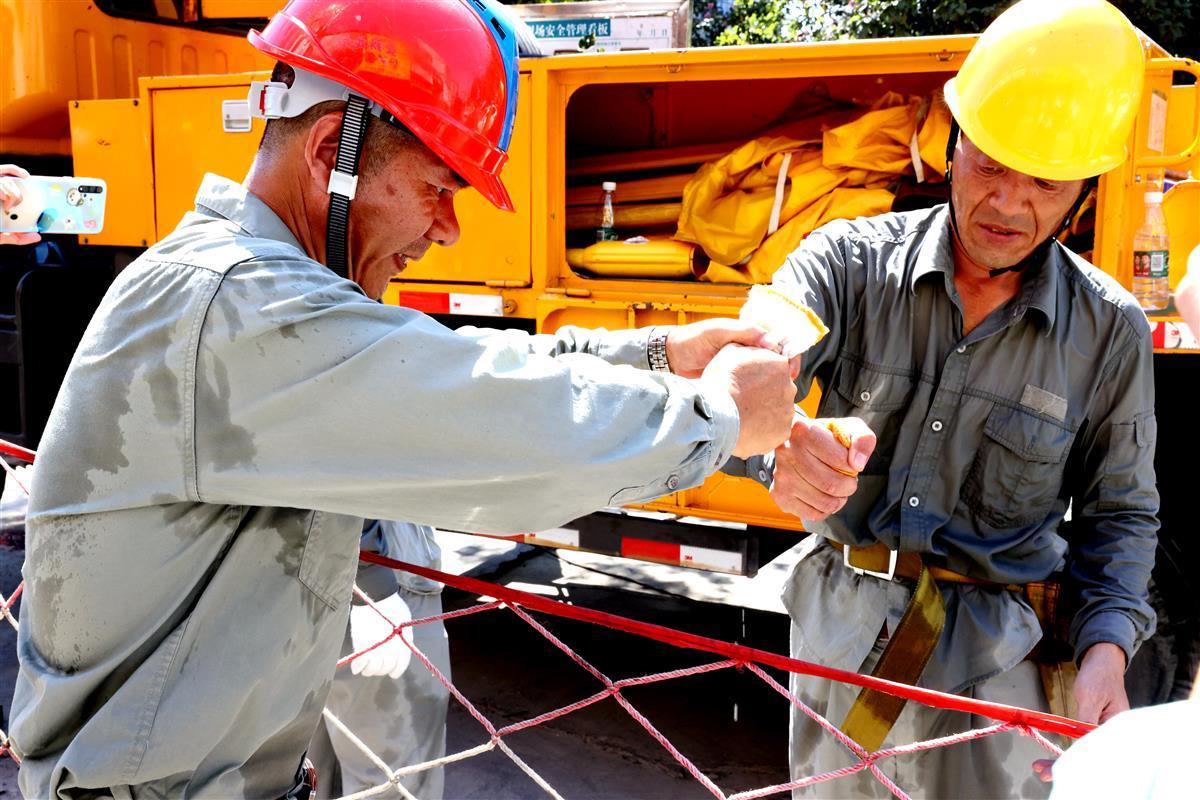 涂中福介绍:“作业人员身上的绝缘披肩有2公斤重,密不透风。在斗臂车上,体感温度至少有50度。”