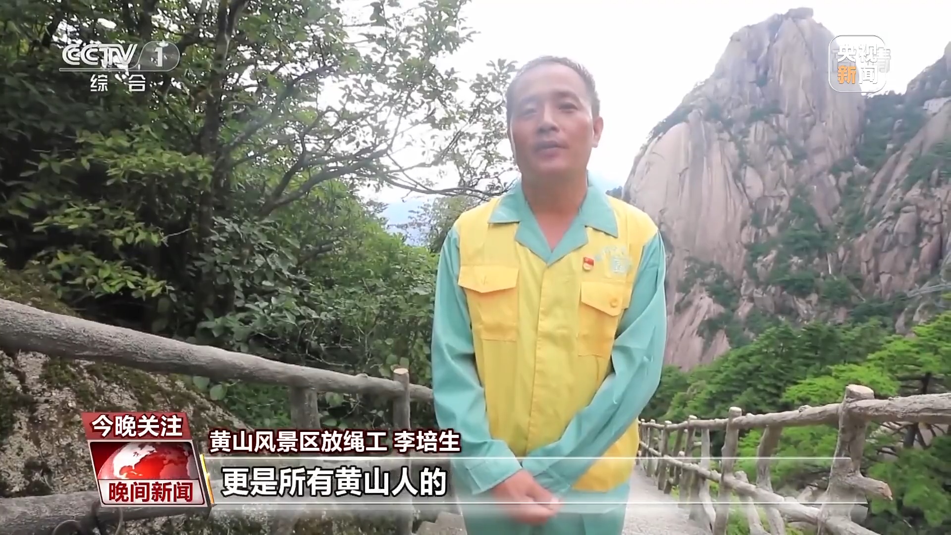 黄山风景区放绳工 李培生:今天,总书记给我们回信,这份巨大的荣耀,不但是属于我和晓春的,更是所有黄山人的。今后工作中,我将时刻牢记总书记的教导,扎根黄山,服务黄山,和大家一起把黄山建设得更加美好。人不负青山,青山定不负人。