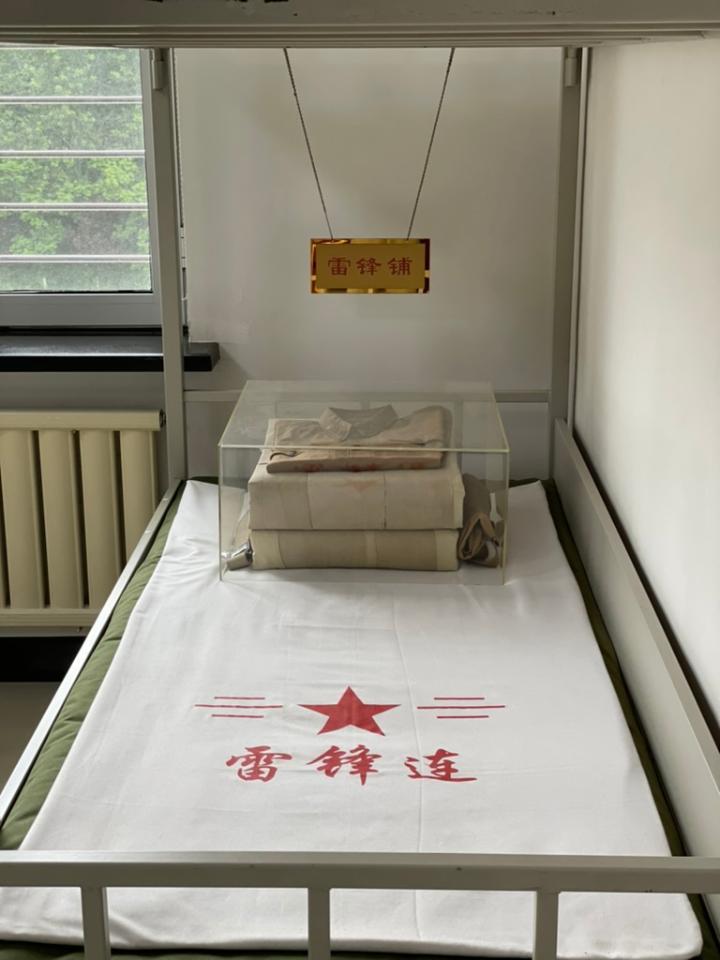 “雷锋班”至今还为他们的老班长雷锋保留着床铺,铺上整齐摆放着雷锋生前用过的被褥、帽子、腰带,在雷锋铺的对面还保留着雷锋传承下来的“节约箱”。