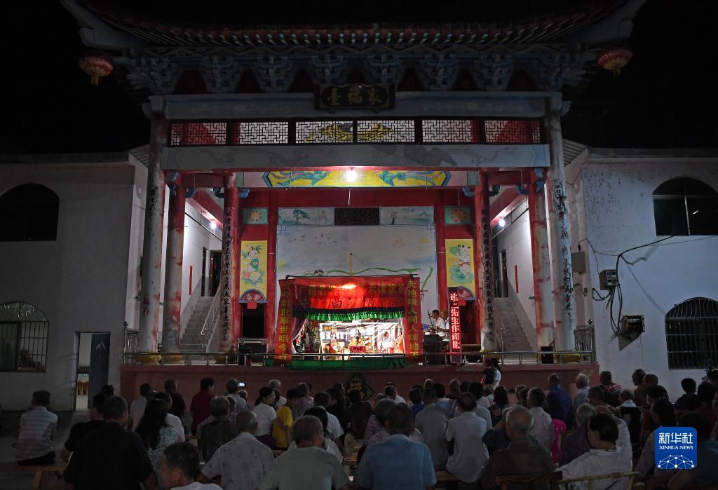 在江西省广昌县塘坊镇大株村,村民在观看木偶戏演出(8月10日摄)。