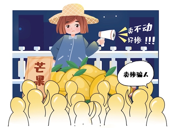 明明水果很畅销,却被一些网络账号扭曲为“大量滞销”,这真是咄咄怪事!而市场监管部门调查发现,当地几乎每年都会出现的这类“卖惨营销”,背后主要是“一些大型团购电商和个人带货在搞鬼”。其主要目的无非是两个:一些是纯粹博取流量,通过“卖惨”方式吸引眼球;另一些则是赚取舆论同情,借机带货捞钱。