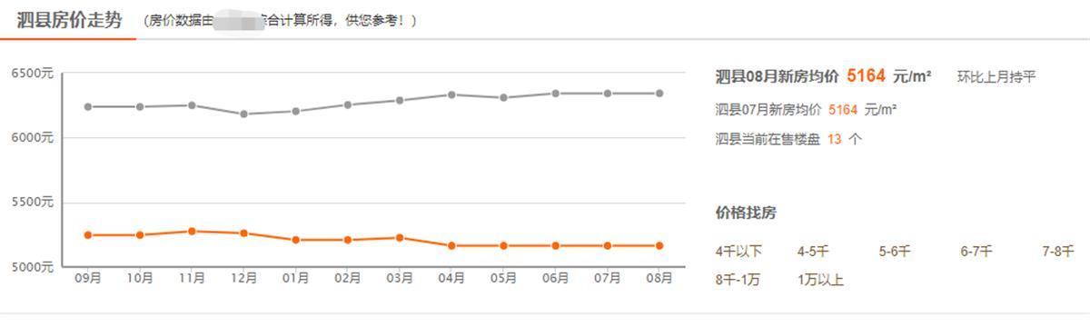 资料显示,截至2021年末,泗县常住人口75.7万人。根据泗县统计局2月发布的信息,2021年全县地区生产总值完成287.74亿元,全县全体居民人均可支配收入20605元。某房地产交易网站显示,泗县8月新房均价为5164元/每平方。