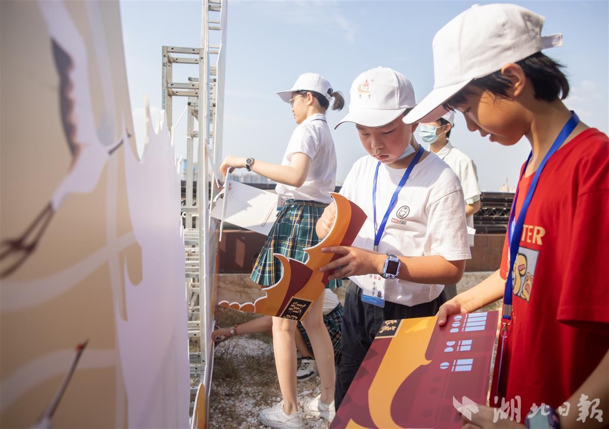 当天下午,台湾学生与武汉学生在黄鹤楼齐聚,共同完成“看图找地名、地名找找看”黄鹤楼打卡活动。现场,两岸学生分别完成了武汉地标黄鹤楼及台北地标101大厦的拼图游戏。随后,双方学生代表手持在武汉以台湾地区命名的街道、在台湾地区以武汉命名的街道标签,贴在两地地图上。