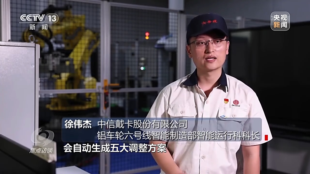 中信戴卡股份有限公司铝车轮六号线智能制造部智能运行科科长徐伟杰说:“我们的全自动三坐标测量设备,可以根据不同的轮型自动调取对应的测量程序,自动生成五大调整方案,并且系统根据大数据预算,优先把最佳方案作为方案一,员工根据方案进行审视,没问题之后进行一键下发、自动调整。”