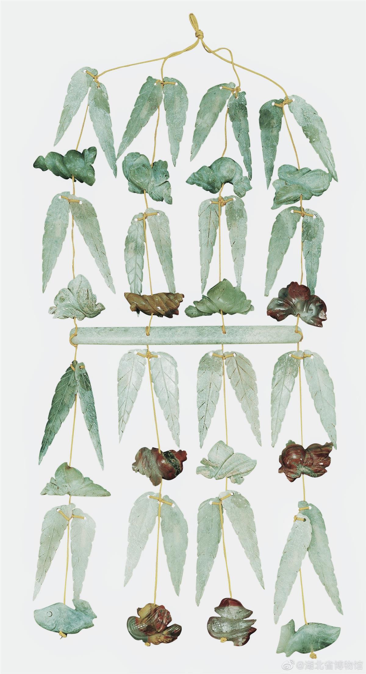 湖北省博物馆讲解员谌夏告诉极目新闻记者,禁步为婚配喜庆之物,它和步摇一样,都是用于约束女子的行为举止和规范仪态,“这副玉禁步由32片玉叶和16件串饰及1件玉珩共49件玉饰组成,推测可能是皇帝为梁庄王纳继妃而特赐的礼物。”