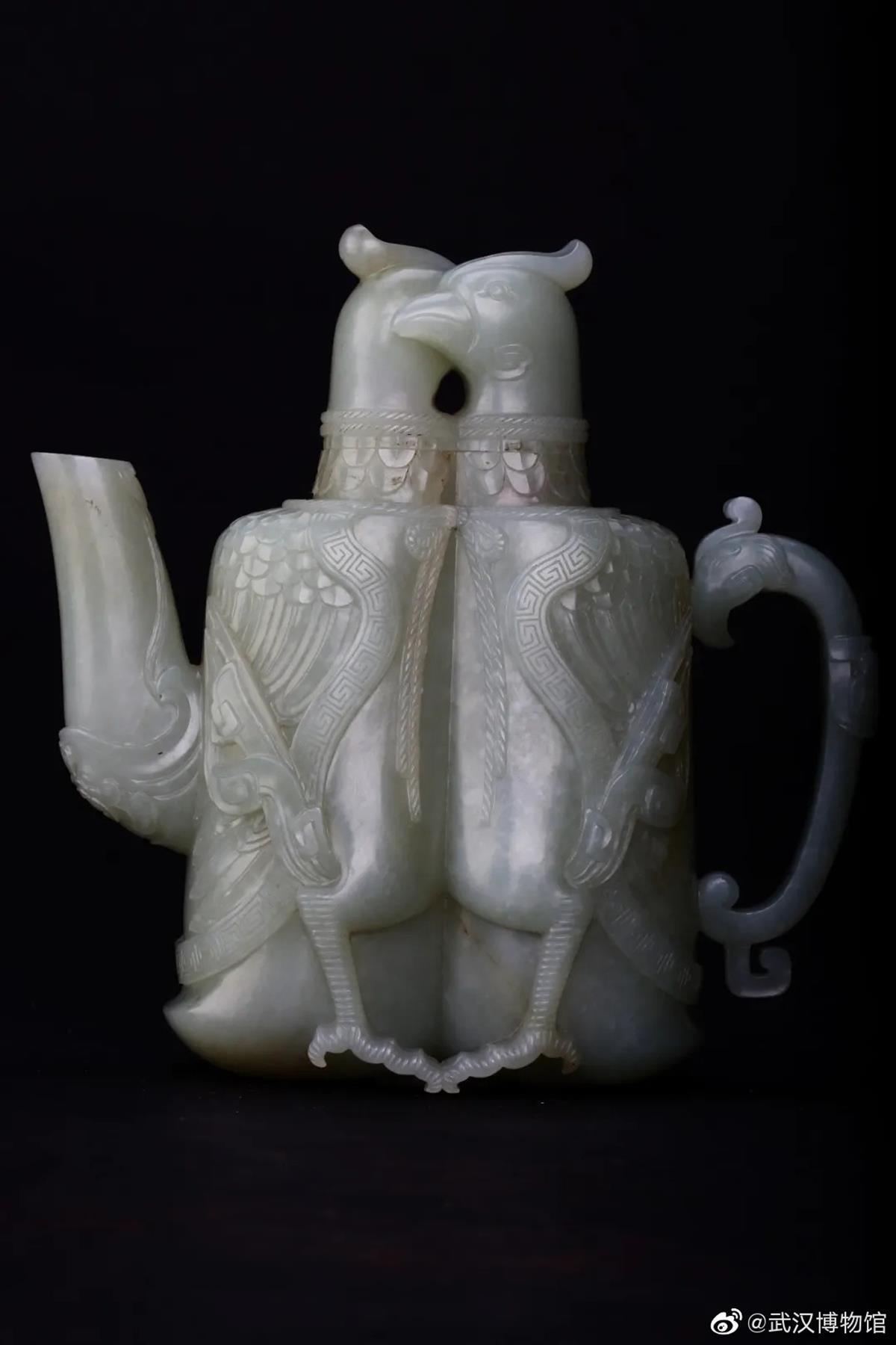 说到玉器,不得不提武汉博物馆珍藏的皇家爱情信物——清代“乾隆”款双凤交颈玉执壶。