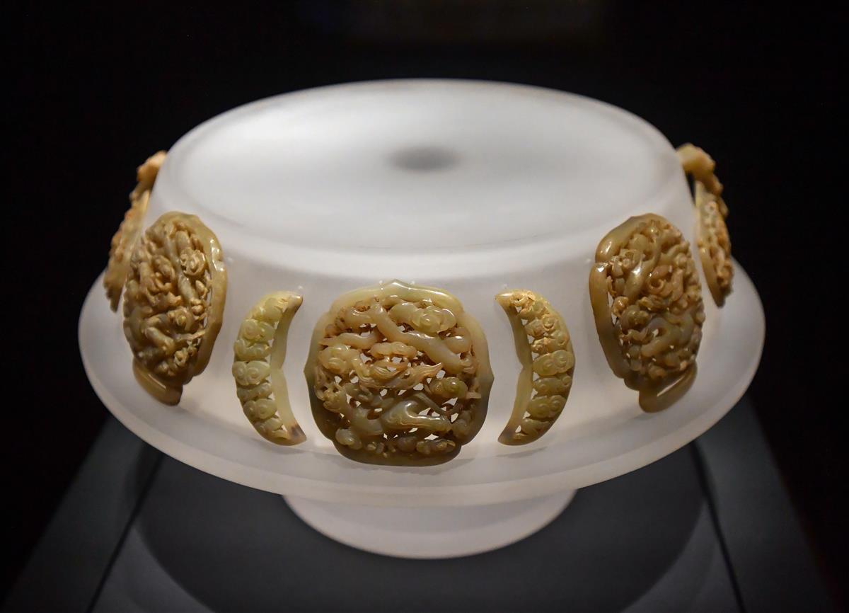 据介绍,这件器物应为清宫皇室大婚时所用,器物造型精巧雅致,研琢严谨规矩,纹饰婉约柔美,是中国制玉工艺鼎盛时期的杰作。