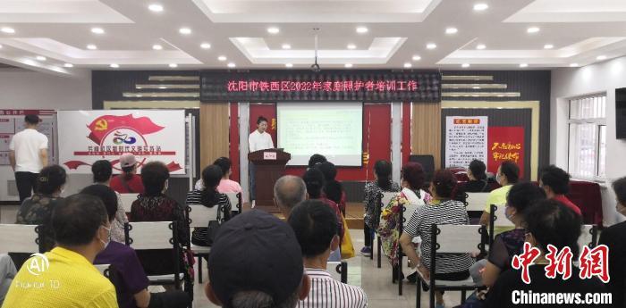 中新网沈阳8月18日电 (记者 赵桂华)“咱们在照护瘫痪老人进食的时候,注意要采取侧卧位,头部不要向后仰,防止老人发生呛咳,同时喂食的频率也不能过快……”8月18日,沈阳市铁西区工人新村街道劳模社区的活动室里,家庭照护者培训会正在进行着。