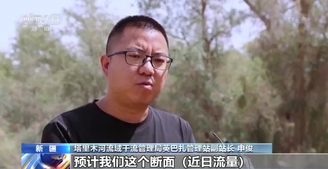 新疆塔里木河流域干流管理局英巴扎管理站副站长 申俊:预计我们这个断面(近日流量)会达到800到900(立方米每秒),后续会加强人员对我们这个堤防的巡护。