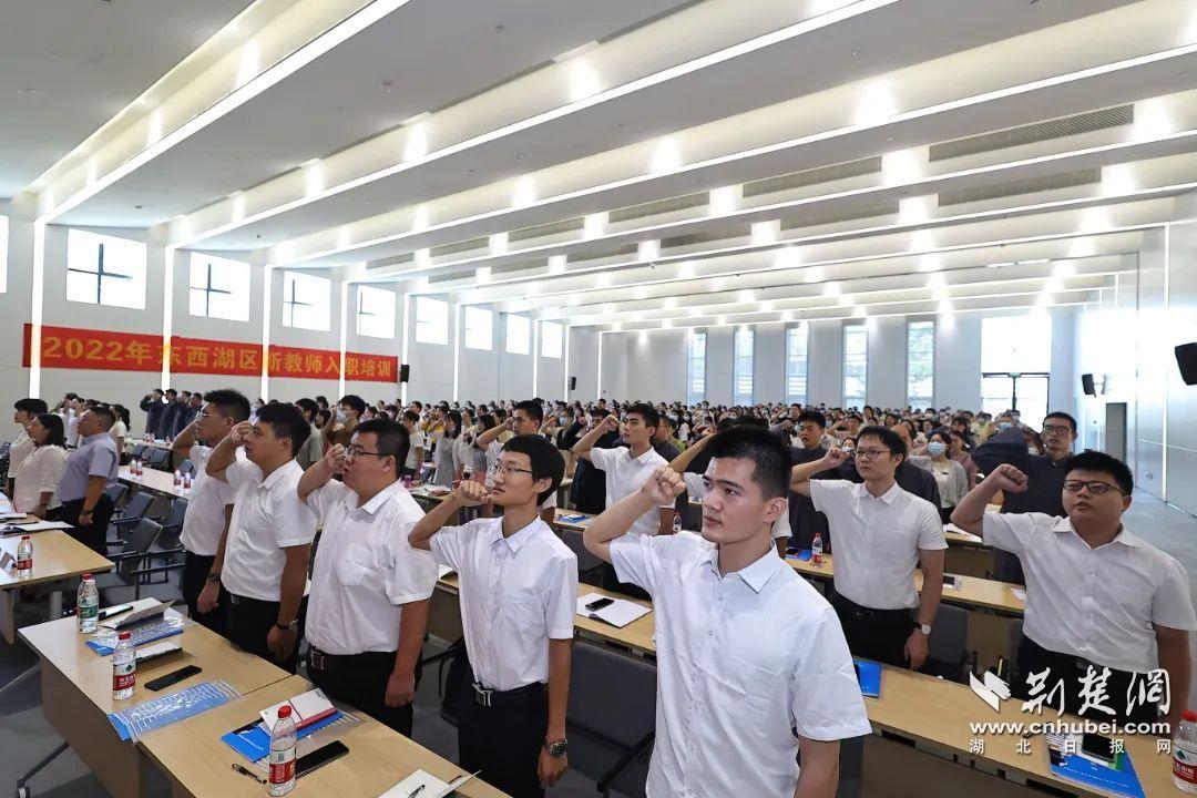 荆楚网(湖北日报网)讯(记者林杉 通讯员王林楠)“少年强国就强,我勇敢乘风破浪……”8月18日上午,2022年东西湖区新教师入职培训在国家网络安全学院图书馆拉开序幕,400余名新教师开启入职培训之旅。新教师代表合唱《少年》,唱响育人初心,把现场带入斗志昂扬、青春激荡的氛围。