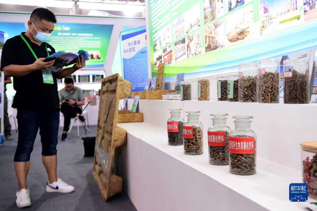 8月19日,与会者在2022安徽秸秆暨畜禽养殖废弃物综合利用产业博览会上了解用秸秆制作的生物质燃料。