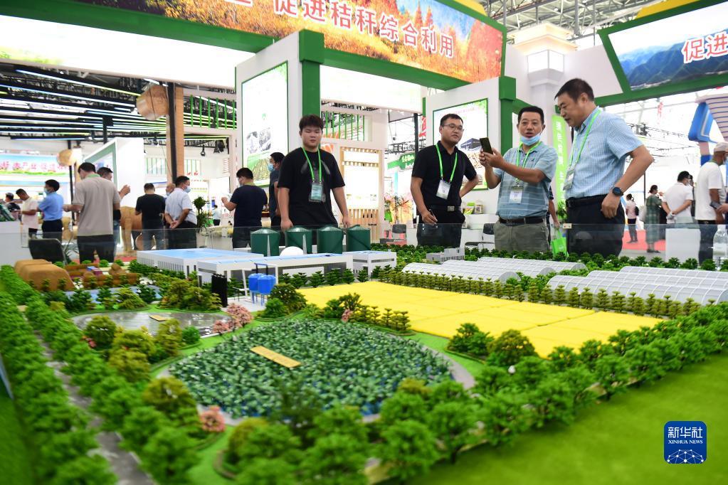 8月19日,与会者在2022安徽秸秆暨畜禽养殖废弃物综合利用产业博览会上观看秸秆及畜禽养殖废弃物综合利用模型。