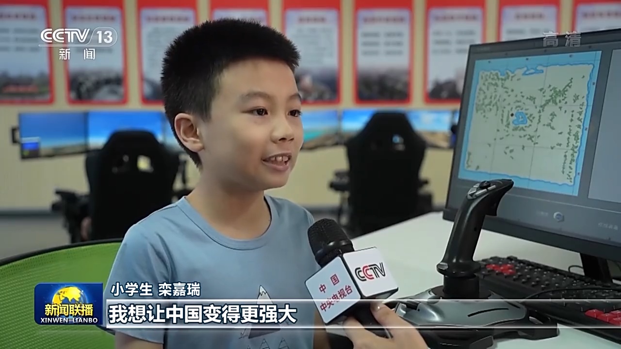 小学生 栾嘉瑞:演示了我飞的模拟飞行,然后习爷爷还夸我你飞得挺好。我想让中国变得更强大,我的愿望是做一名战斗机飞行员。