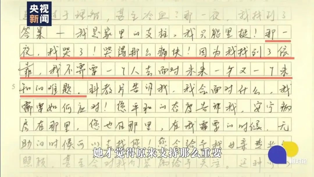 这位患者家属是家中独女,母亲患病后,她怪自己“只哭过两次!也只是蜻蜓点水”。在与秦苑等交谈过后,终于找到释放的出口,“那一夜,我哭了!哭得那么痛快!因为我找到了依靠,我不需要一个人去面对未来一个又一个未知的难题。”