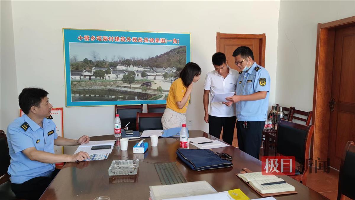 在笔架村村委会,几名孝昌县市场监管局的工作人员正在为村里的种植户刘超解决困难,“让他尽快完成食品生产许可的资质认定,让他的茶叶能够上网卖。”