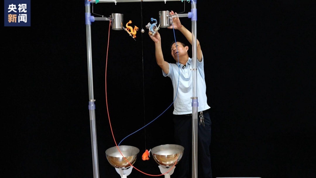 唐守平制作的“开尔文滴水起电趣味实验演示器”。