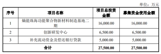 熵能新材原拟在深交所创业板公开发行股份数量不超过1,190.00万股,占发行后总股本的比例不低于25%。本次发行不涉及原有股东公开发售股份的情况。公司原拟募集资金27,500.00万元,分别用于熵能珠海功能聚合物新材料制造基地二期、创新研发中心、补充流动资金及偿还银行贷款。