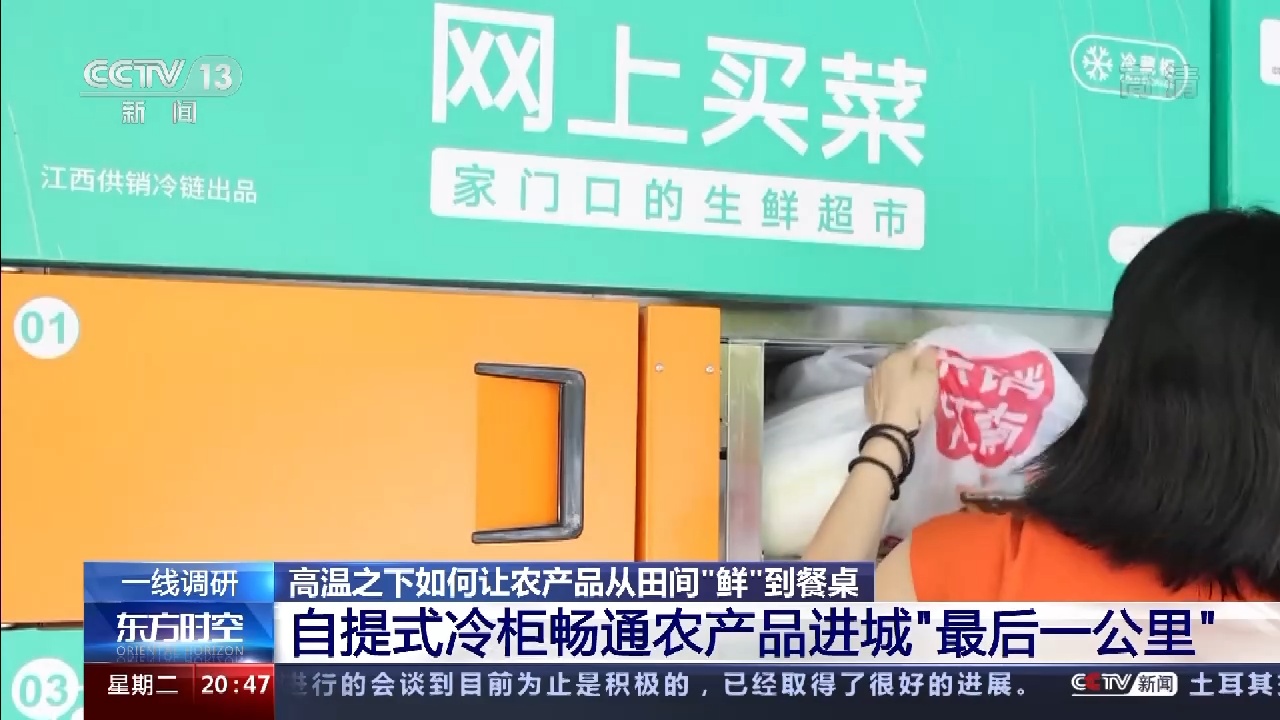 江西省供销江南物联网有限公司综合办总监 许婕:我们将自提式冷柜安置在居民区和商业区。这个自提式冷柜节省了外出购物的时间,同时保证食材的新鲜度,也为农产品新鲜进入百姓餐桌“最后一百米”保驾护航。